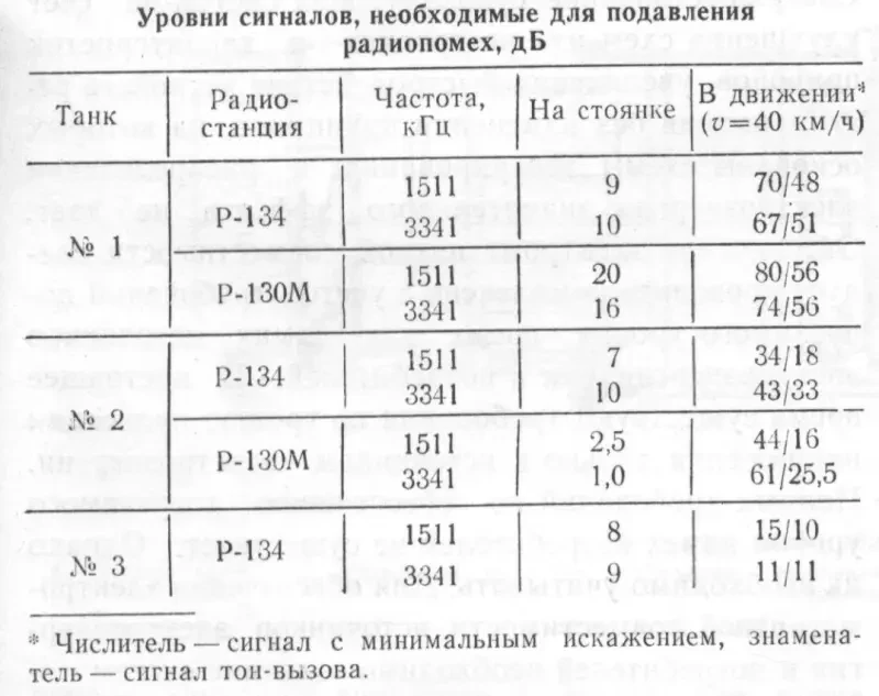 Для исследования этой проблемы проведены специальные испытания командирских машин на базе основных танков Т-72, Т-64А, Т-80 (далее танки № 1, № 2, № 3), имеющих различную конструкцию гусеничного движителя, с радиостанциями Р-134 и Р-173. Гусеницы танка № 3 были оснащены токопроводящими резинометаллическими шарнирами..