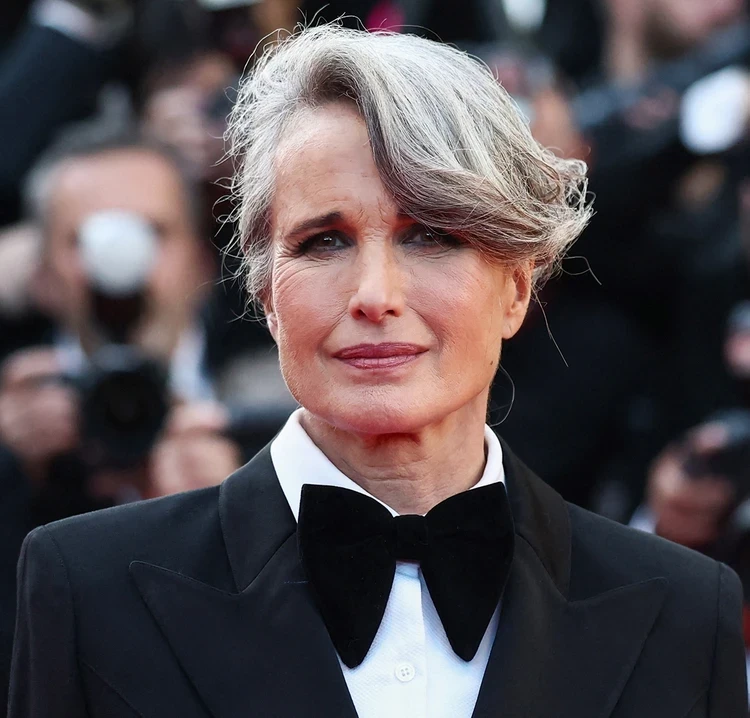 Нестареющая Энди Макдауэлл вышла на дорожку в элегантном брючном костюме и бабочке. Образ звезда дополнила сверкающими лодочками. Кстати, актриса не закрашивает седину и выглядит в своих 67 лет превосходно.
