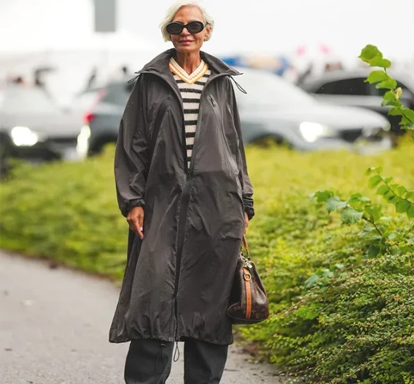 - Парка или объемный дождевик + изящные слингбэки.