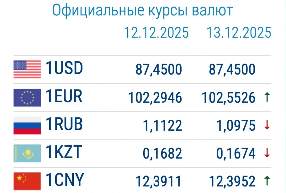 Курс доллара остается на уровне 87,45 сома, тогда как евро показывает рост, а рубль, напротив, теряет в стоимости.