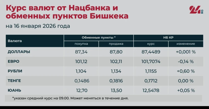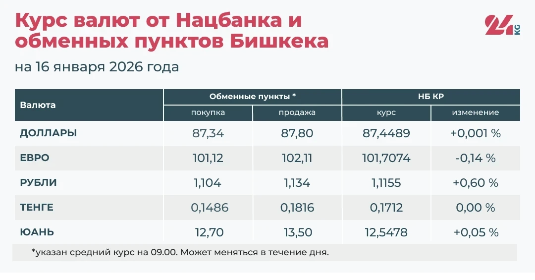 - Официальный курс НБ КР: 87,4489 сома (увеличение на 0,001 процента).