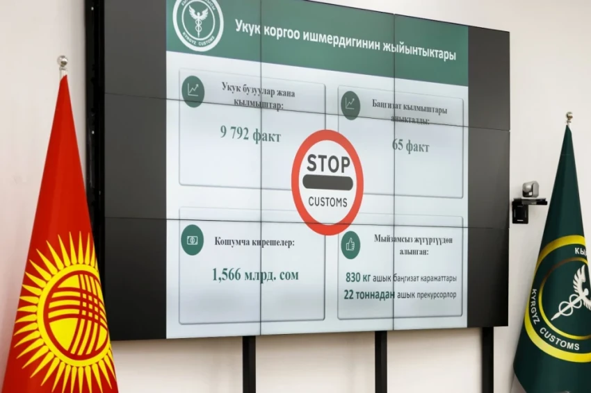 In the field of law enforcement activities, 9,792 violations and crimes in the area of customs legislation were identified in 2025. Additional revenues to the budget amounted to more than 1.566 billion soms, which is almost twice the results of the previous year.