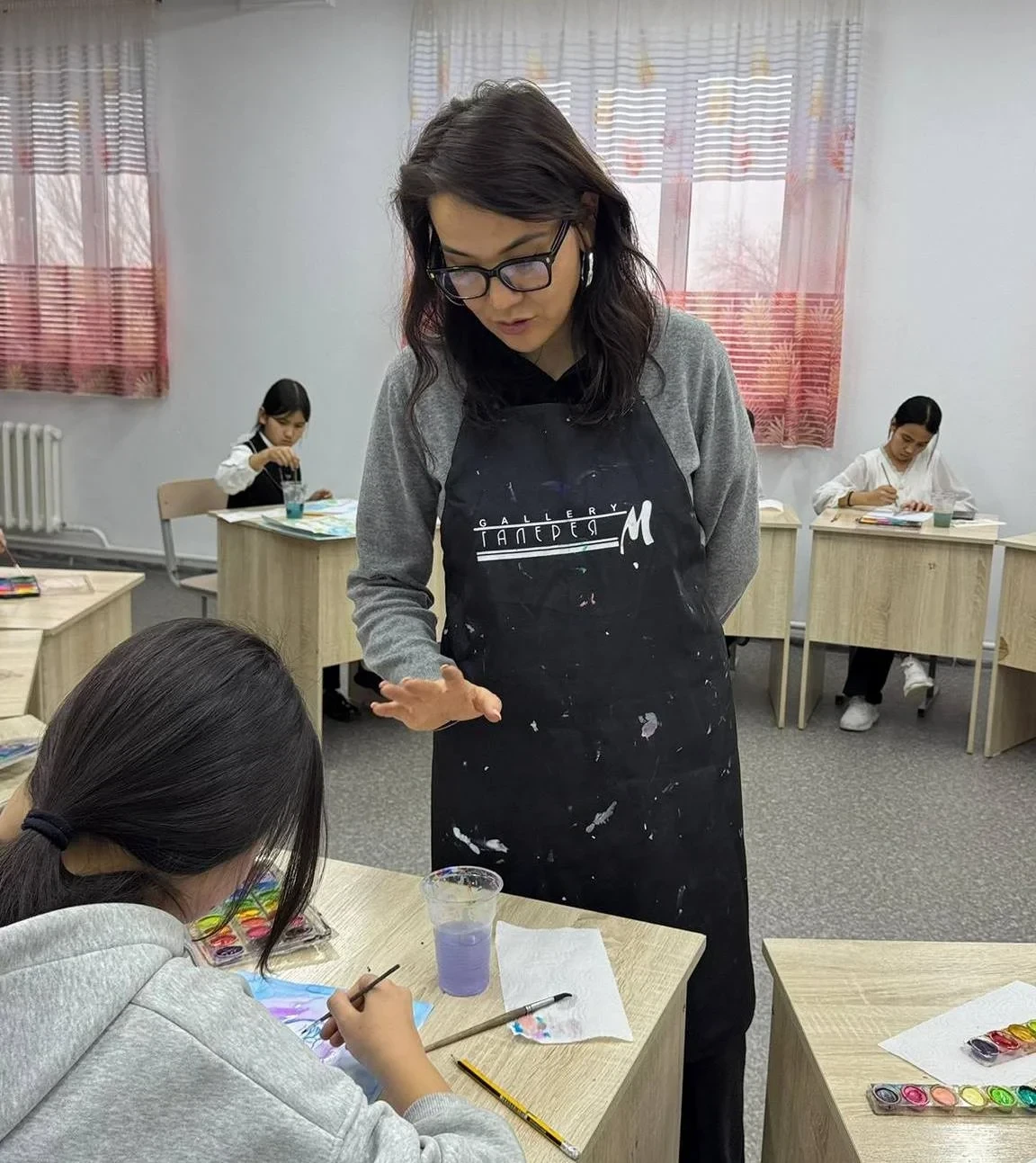 Special attention was drawn to the master classes organized by People's Artist of the Kyrgyz Republic Baktybek Ybykeev on vocals and artist Zulfiya Akimova from the "Gallery M" under the direction of director Meerim Akmatkulova. Children had the opportunity to interact with the masters and ask them questions in an informal setting, allowing them to learn more about creative professions and the world of art.