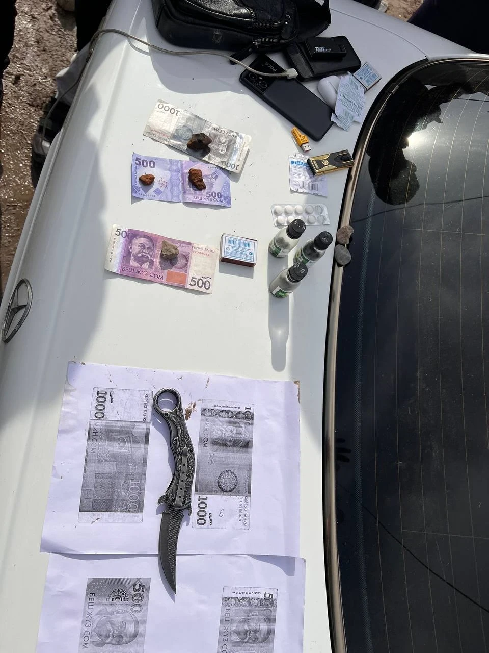 During another money transfer of two thousand soms, the suspect was detained by the police. A knife and cash were also found in his possession.