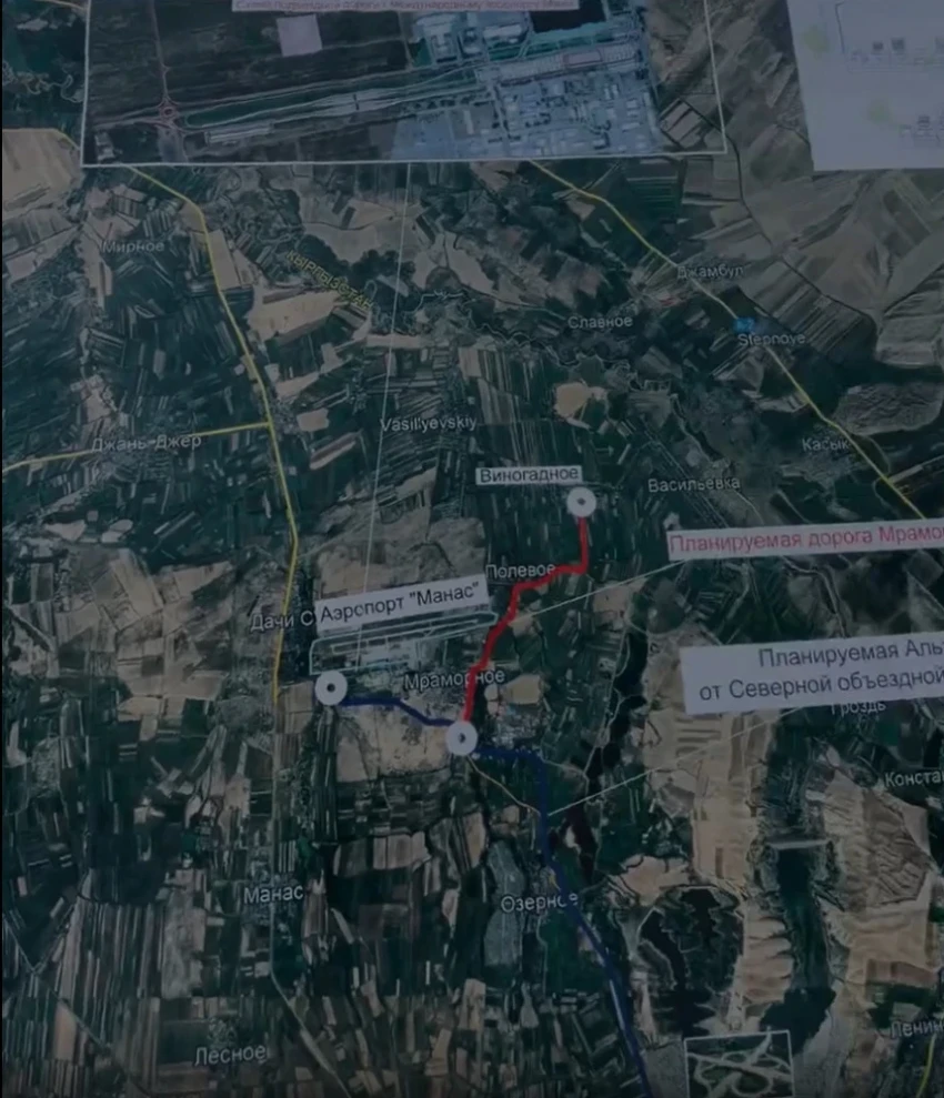 Construction of an alternative road to Manas Airport is planned