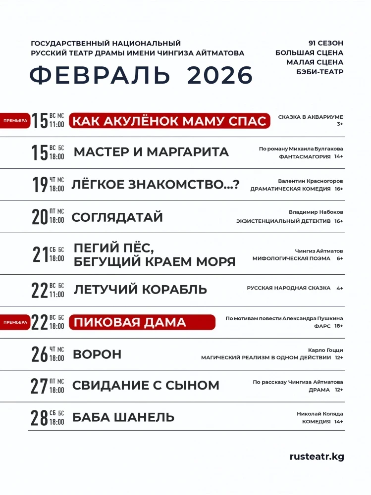 The February repertoire of the Russian Drama Theater named after Ch. Aitmatov.