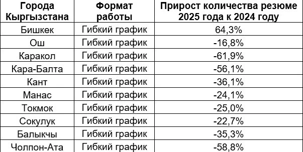 Top 10 Cities with Resumes Offering Flexible Work Schedules in 2025 on headhunter.kg