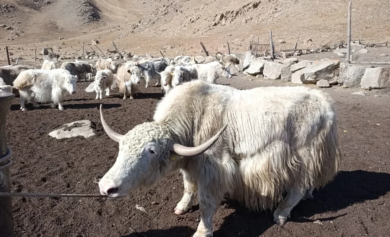 Yaks are capable of living on pastures year-round and are highly resilient to challenging climatic conditions, including frosts down to -40 °C. They are used for meat, milk, and wool production, maintaining stable productivity even in high-altitude conditions.