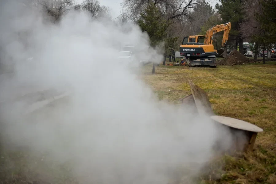 On April 7 street in Bishkek, an accident occurred on the heating network located between Mederov and Akhunbaev streets. According to information from city authorities, a heating pipe with a diameter of 900 mm was damaged.