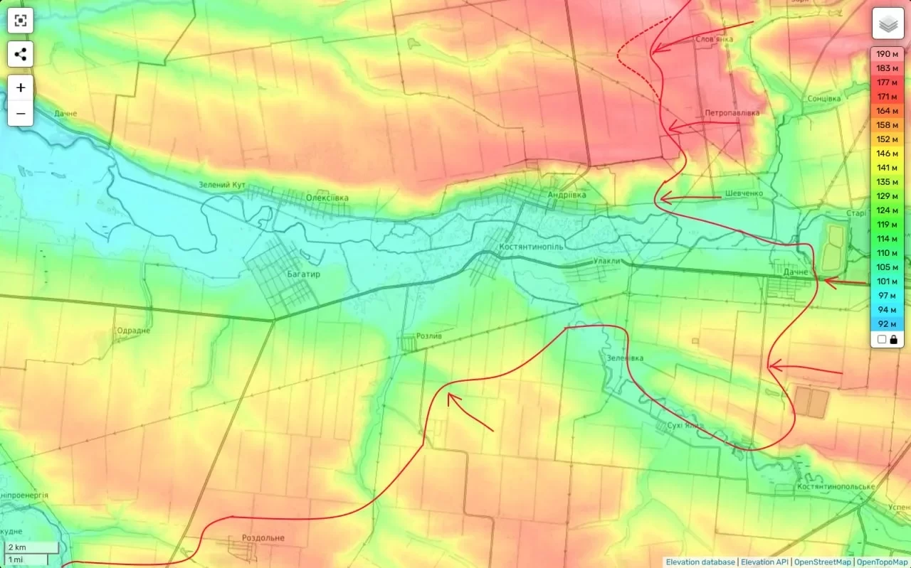 Особое внимание уделяется так называемому "междуречью" рек Солёная и Волчья, где продолжаются ожесточённые бои. Российские силы продолжают движение по холмам западнее Славянки и Петропавловки, а также развивают наступление в районе Надеевки и Успеновки.