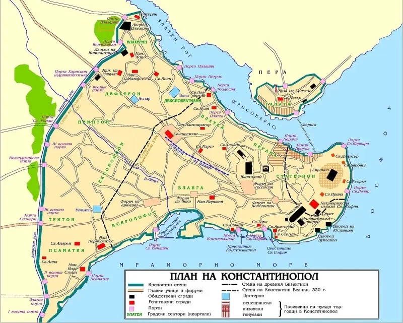 Общая схема городских стен Константинополя