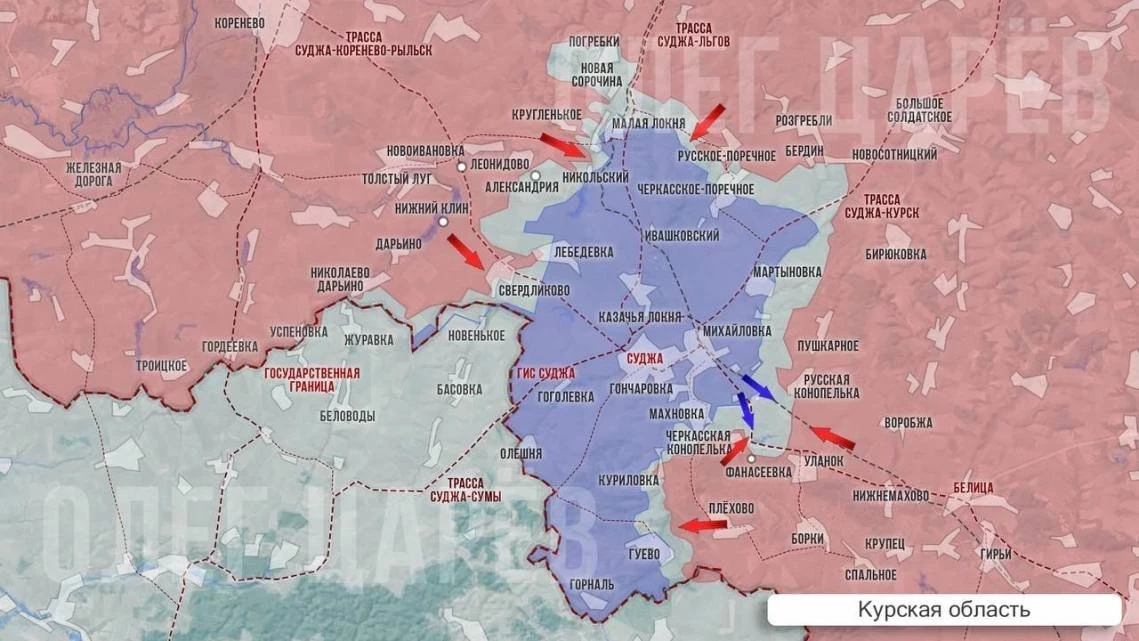 К югу от Суджи наша армия восстановила позиции около Черкасской Конопельки и зашла на окраину Махновки, вплотную подбираясь к Судже. Но здесь, как и в Куриловке, противник сопротивляется очень ожесточенно, пишет Олег Царёв в своём Telegram-канале.