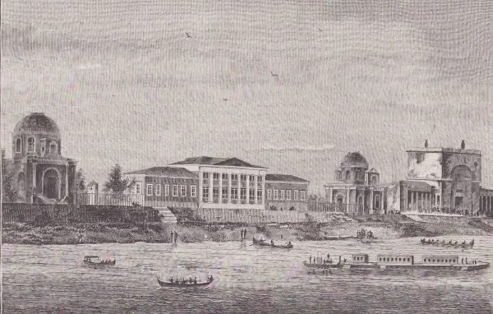 Вначале императрица и ее свита плыли на больших и роскошных галерах.