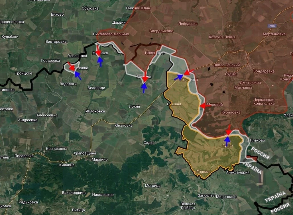 В настоящее время родолжаются встречные бои в районе Веселовки, Журавки и Басовки Сумской области. ВС РФ ведут штурмовые действия в направлении Гоголевки, Гуево и ГИС «Суджа» Курской области, имеются тактические успехи в районе Мелового.