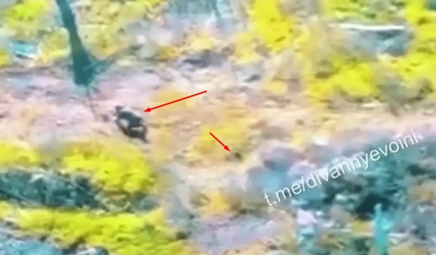 На кадрах объективного контроля, распространяемых российскими околовоенными пабликами, видно, как вражеский дрон преследует военнослужащего ВС РФ. Боец, по-видимому, слышит звук приближающегося «убийцы», но не видит, с какой стороны происходит атака.
