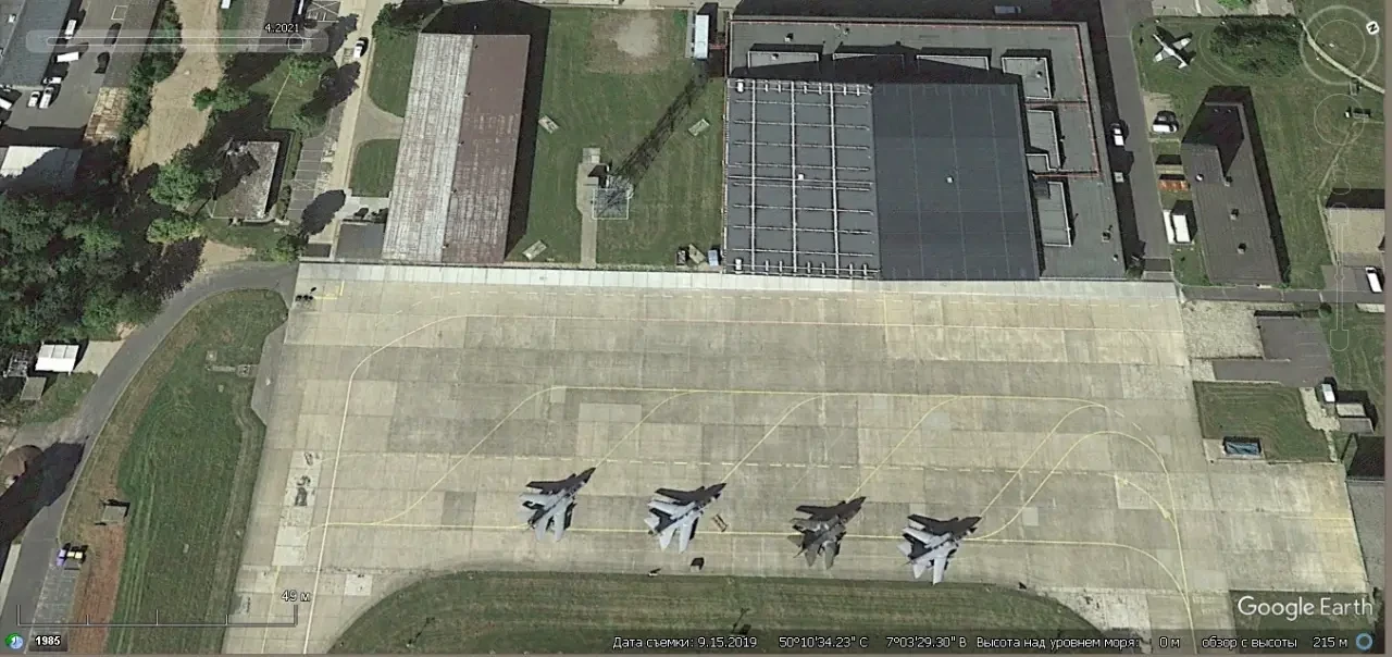 Спутниковый снимок Google Earth: самолёты Tornado на авиабазе Бюхель