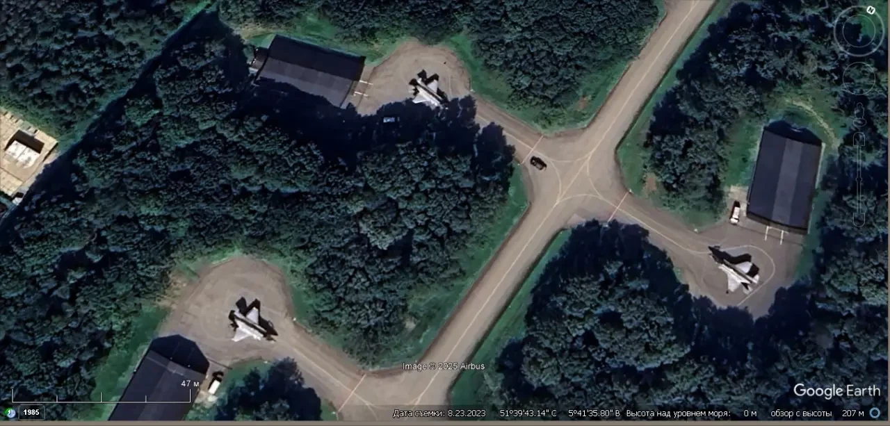 Спутниковый снимок Google Earth: комбинированные укрытия на авиабазе Бюхель