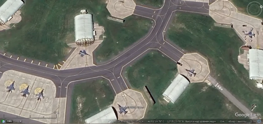 Спутниковый снимок Google Earth: истребители F-16C/D на авиабазе Мисава