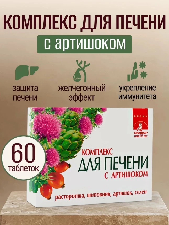 Комплекс для печени Биокор с артишоком уверенно входит в топ БАДов для печени благодаря своему продуманному составу: расторопша восстанавливает клетки, артишок улучшает отток желчи, а селен усиливает антиоксидантную защиту. Добавка работает на мягком, но стабильном уровне: не перегружает организм, а системно оздоравливает печень, особенно после токсических нагрузок. Отличный выбор для тех, кто ищет профилактику без химии и доверяет растительным компонентам.