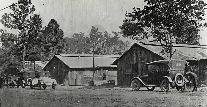 После вступления Соединенных Штатов в Первую мировую войну, правительство арендовало у штата территорию, которая находилась к западу от городской черты Хьюстона, для строительства там военного городка, рассчитанного на размещение примерно 40 000 солдат. Объект должен был быть назван лагерем Логан (Camp Logan) в честь генерал-майора Джона А. Логана, ветерана Гражданской войны и конгрессмена США. Всего за тринадцать дней сотни местных рабочих завершили основную инфраструктуру лагеря, превратив его в действующий учебный центр с больницей, почтовым отделением, палатками для размещения солдат, пекарней, столовыми, артиллерийскими стрельбищами, конюшнями и многим другим. Источник: The Houston Chronicle.