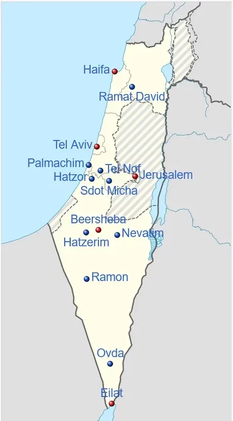Израильские авиабазы обозначены синими точками