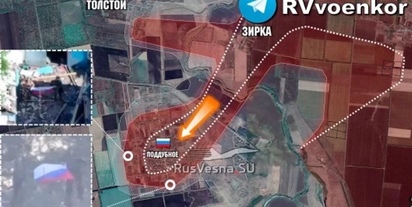 «ВС РФ продвигаются на великомихайловском участке южно-донецкого направления, взламывая оборону ВСУ и приближаясь к Днепропетровской области. В Междуречье Волчьей и Мокрых Ялов российские войска закрепились в восточной части населенного пункта Толстой, закрыли „карман“ западнее Веселого и продвинулись, освободив Поддубное, в центральной, западной и южной частях которого установили флаги России. Также бои идут в направлении Мирного и Воскресенки», - сообщили военкоры.