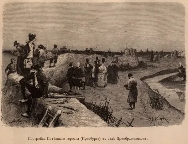 М. Нестеров. Постройка потешного городка Пресбург в селе Преображенском