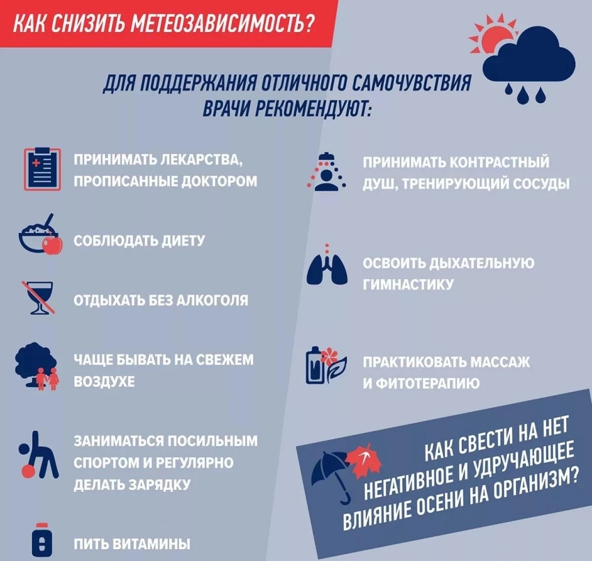 Исходя из вышеизложенных данных метеопатам нужно готовиться к обострению хронических недугов и в целом к ухудшению самочувствия на протяжении дня. Их будут преследовать головные боли, скачки артериального давления и общая быстрая утомляемость.