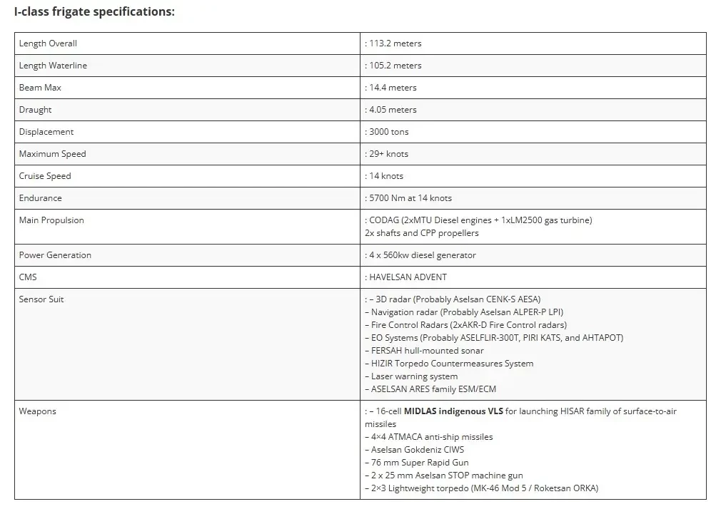 Фрегаты типа Istiif, так же как и истребитель KAAN, сложно назвать проверенным в деле проектом: из 8 кораблей, предназначенных для ВМС Турции, в строй введён только один (в январе 2024 года), ещё два спущены на воду.