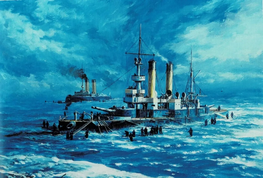 9. Эскадренный броненосец «Орел» 1905 г. Бумага, темпера, гуашь, 43х39, 2005 г.