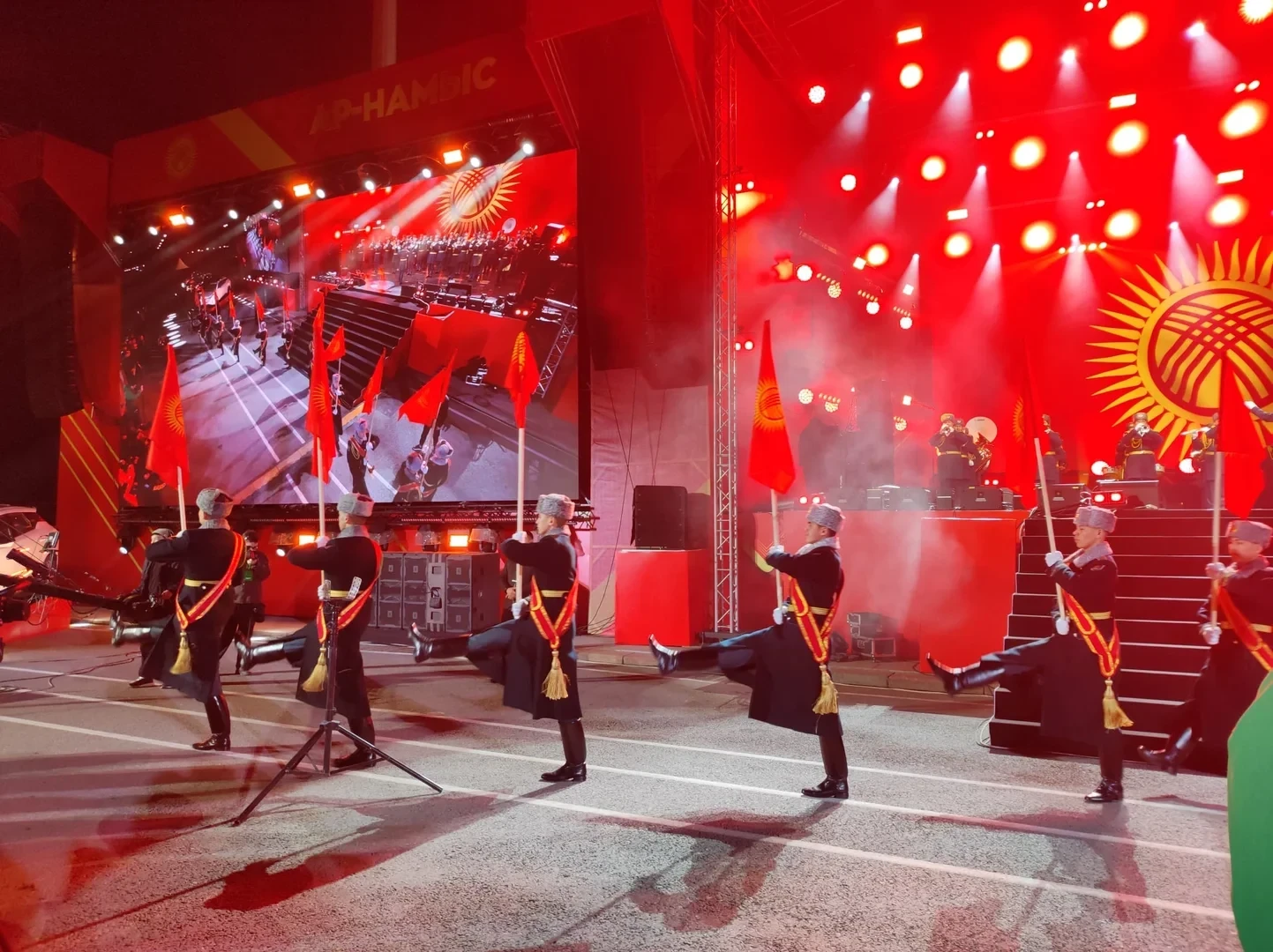 В Бишкеке на площади Ала-Тоо проходит концерт, приуроченный к Дню защитника Отечества.