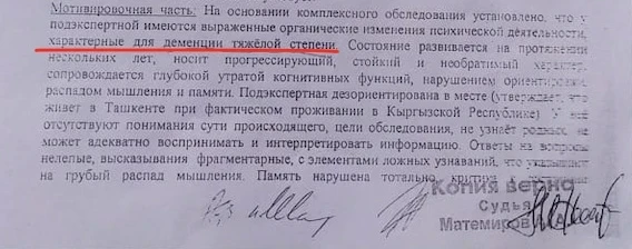 Иссык-Кульский районный суд признал Прокофьеву недееспособной, следовательно, она не могла совершать сделки. Однако Иссык-Кульский областной суд отменил это решение, и Верховный суд направил дело на пересмотр. 26 января состоится заседание Верховного суда без участия сторон.