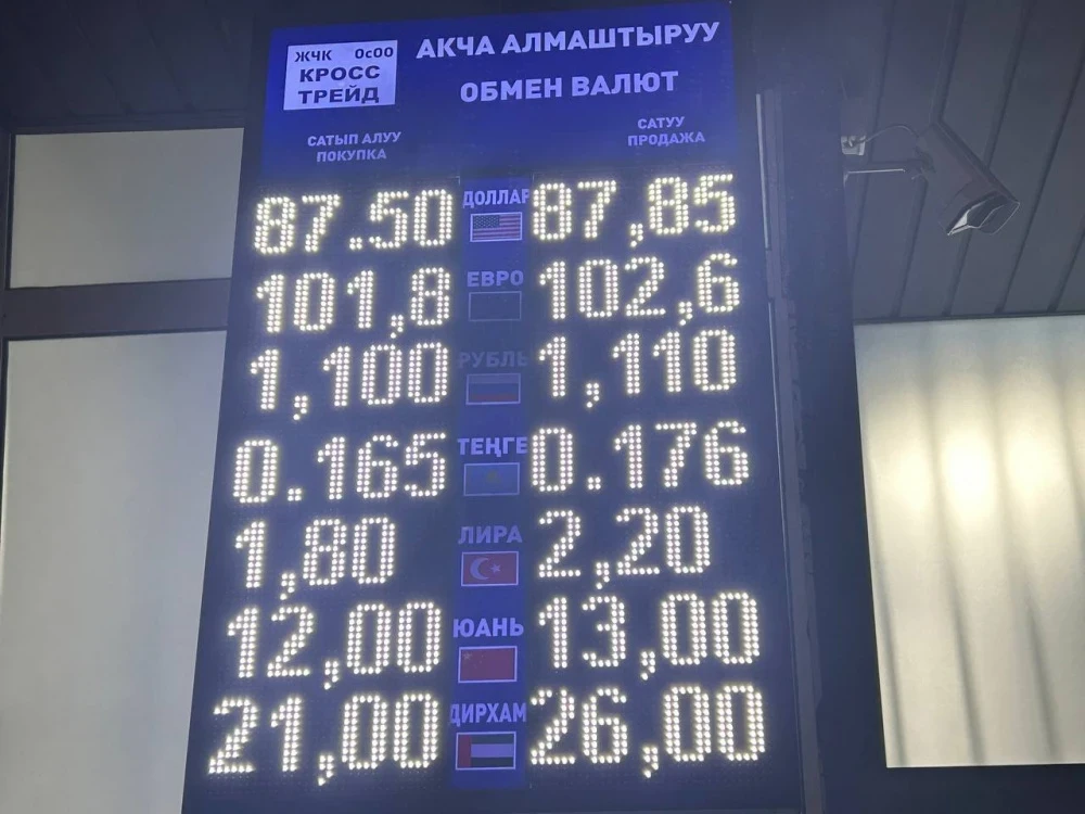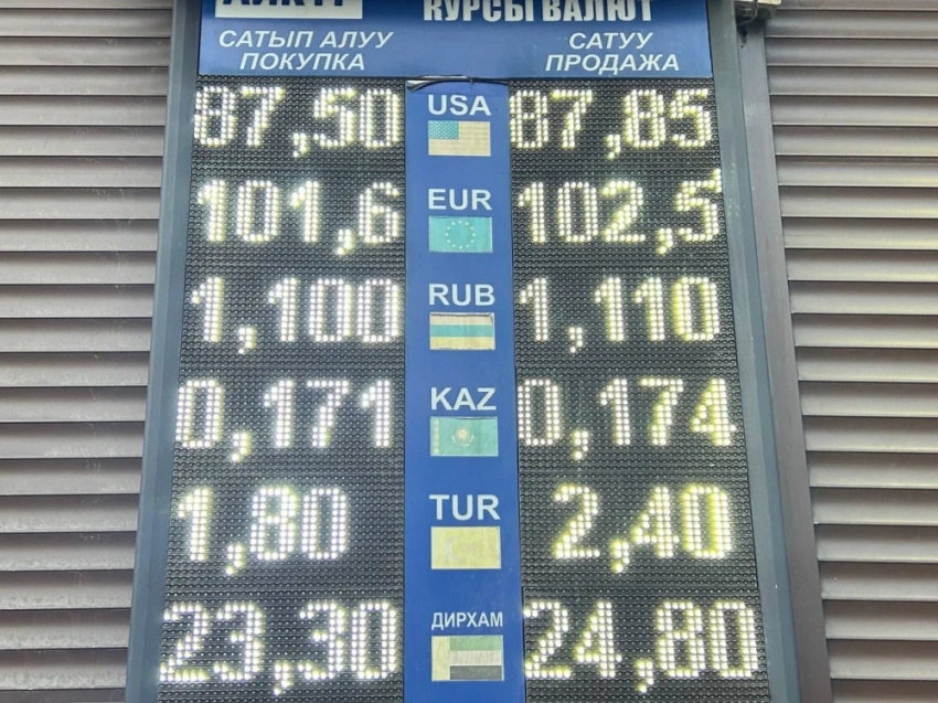 Евронун курсу дээрлик өзгөрүүсүз калды: аны 101,6-102,2 сомго сатып алса, 102,4-103 сомго сатышат.