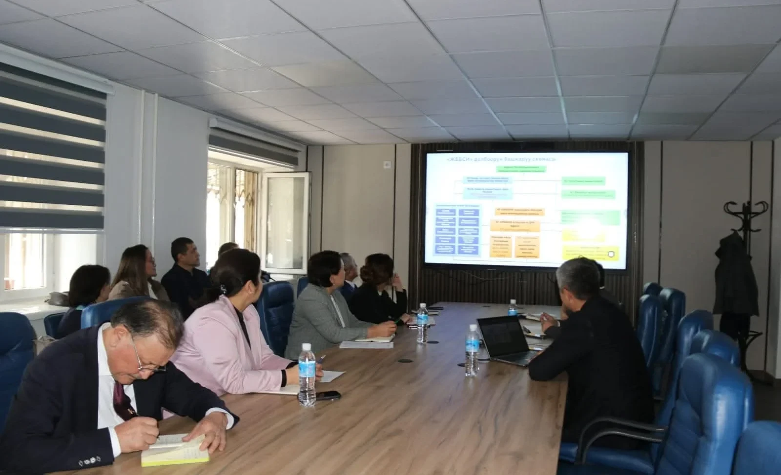 Иш-чарага министр жана министрликтин ар кандай структуралык бөлүмдөрүнүн жетекчилери катышты.
