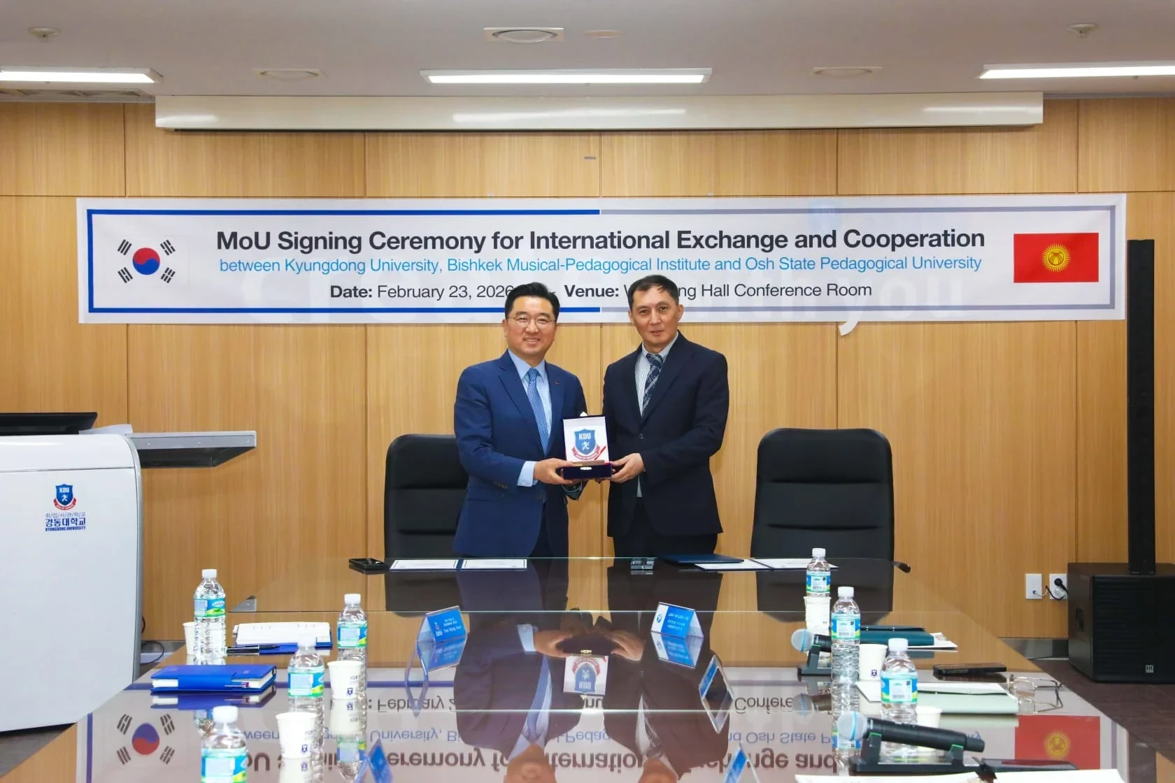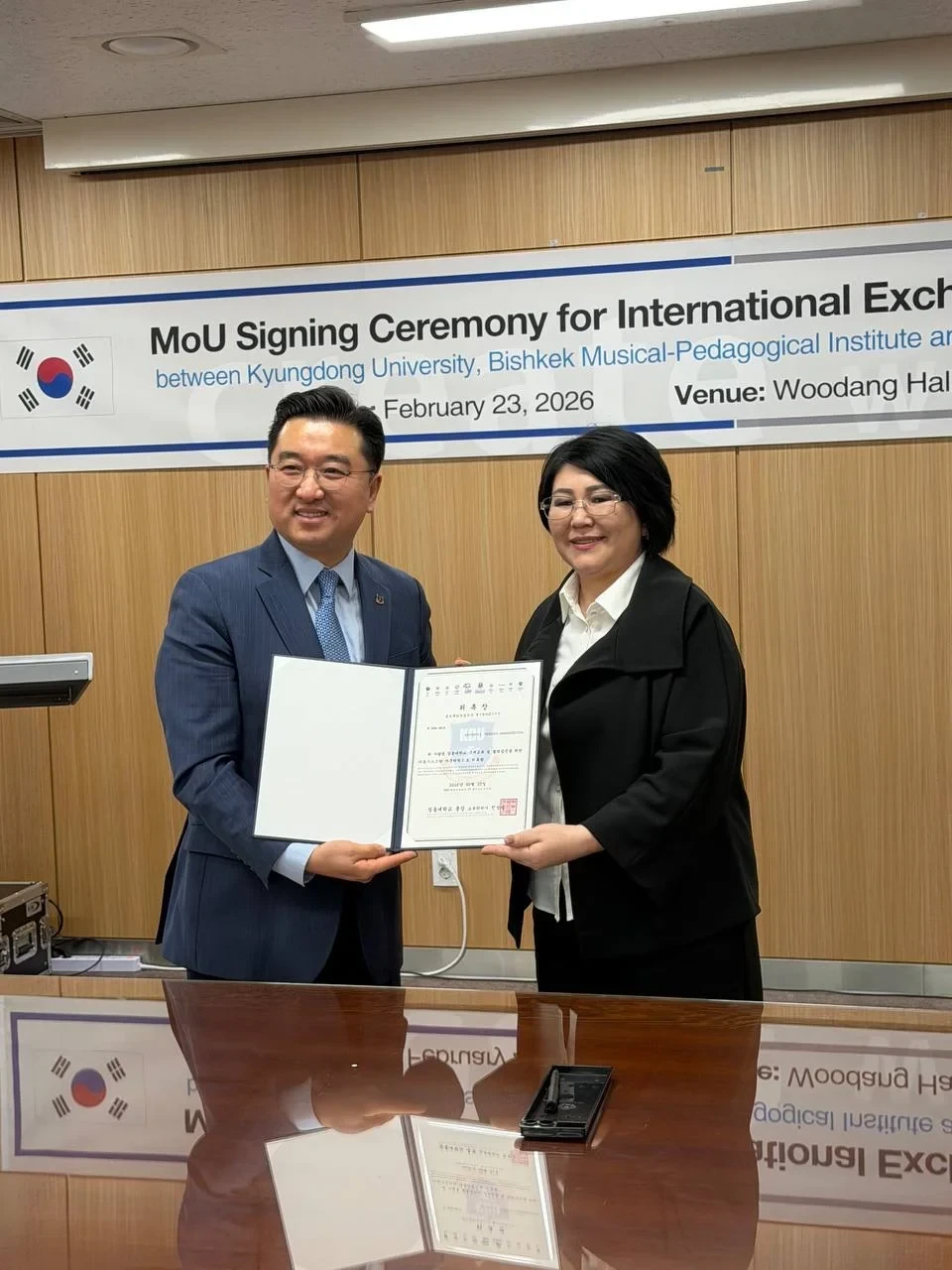Ош мамлекеттик педагогикалык университети А. Мырсабековдун ысымында Бишкек музыкалык-педагогикалык институту Т. Эрматовдун ысымында белгилүү корей университеттери - Dong-eui Institute of Technology жана Kyungdong University менен эл аралык кызматташуу боюнча келишимге кол коюшту. Бул маалымат Кыргыз Республикасынын Билим берүү министрлигинин басма сөз кызматы тарабынан жарыяланды.