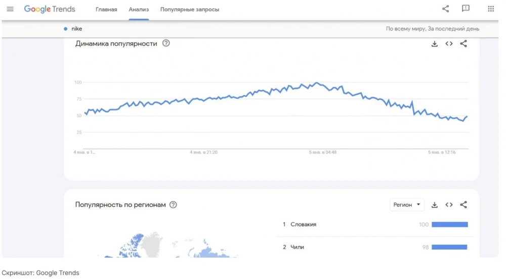 Google Trends маалыматтарына ылайык, 4 жана 5-январда Nike Tech, серый Nike Tech жана Nike Tech костюмуна байланыштуу суроолорго болгон кызыгуу бир нече эсе өстү. Кээ бир суроолор максималдуу популярдуулук индексине — 100 баллга жетти.