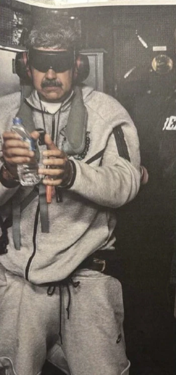 Бардыгы Дональд Трамптын Truth Social социалдык тармагында жарыялаган постунан башталды. 3-январда Мадуро кармалгандан кийин тартылган сүрөттө ал колу менен кармалган, көзүндө калың кара байлап, үн жутуучу наушниктер менен көрүнүп, үстүндө классикалык серый Nike Tech Fleece комплекти бар.