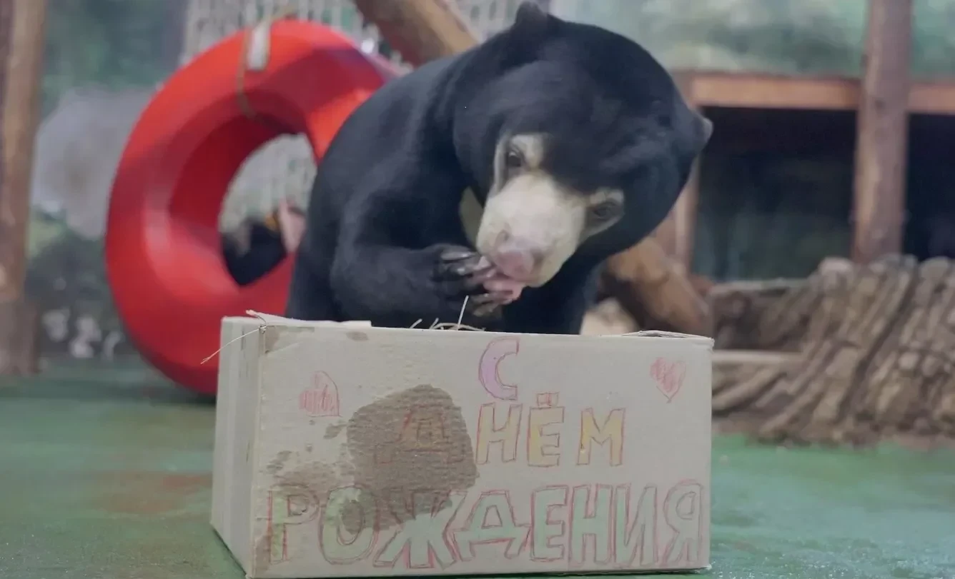 Москва зоопаргындагы малай медвежка Маша өзүнүн экинчи туулган күнүндө таң калыштуу белектерди алды, деп билдирет РИА Новости. Бул күнү, 24-февралда, ага асмандыктар торт жана табышмактуу куту менен татымалдар берилди. Индей стилинде жасалган торт тотемдик стеланы эске салды жана ал асмандыктар, сәбиз, алма, алмурут жана апельсинден даярдалган. Таттуу татымалдарга кошумча, кутуда көп жыпар жыттуу чөп, ошондой эле бал, жер жаңгагы, кургатылган өрүк жана чийки өрүк менен крафт кагазына оролгон пакет бар эле.