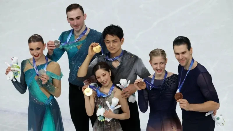Ортодо: Рику Миура жана Рюити Кихара (Япония), солдо Анастасия Метелкина жана Лука Берулава (Грузия), оңдо Минерва Фабьенне Хазе жана Никита Володин (Германия). Фото EPA/Shutterstock.