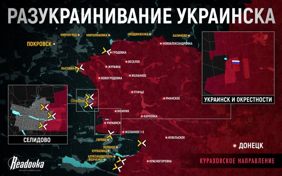 Падение Украинска - ярчайший пример подобной смены подхода от привычной позиционной войны, который привел к верному и уже заметному ухудшению положения противника. Более того, взятие ВС РФ этого города опять ставит Селидово под угрозу - теперь с юга его прикрывает только около 4 км полей и посадок.