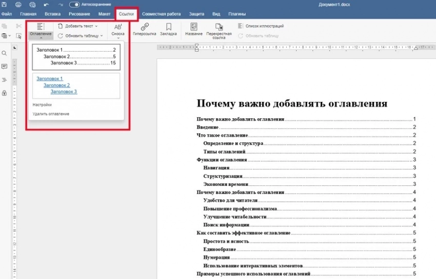 Благодаря автоматическому оглавлению не нужно вручную исправлять пункты или пересчитывать страницы. Этот инструмент сделает вашу работу удобной и более организованной. Попробуйте, и вы оцените, насколько это упрощает создание объемных документов.
