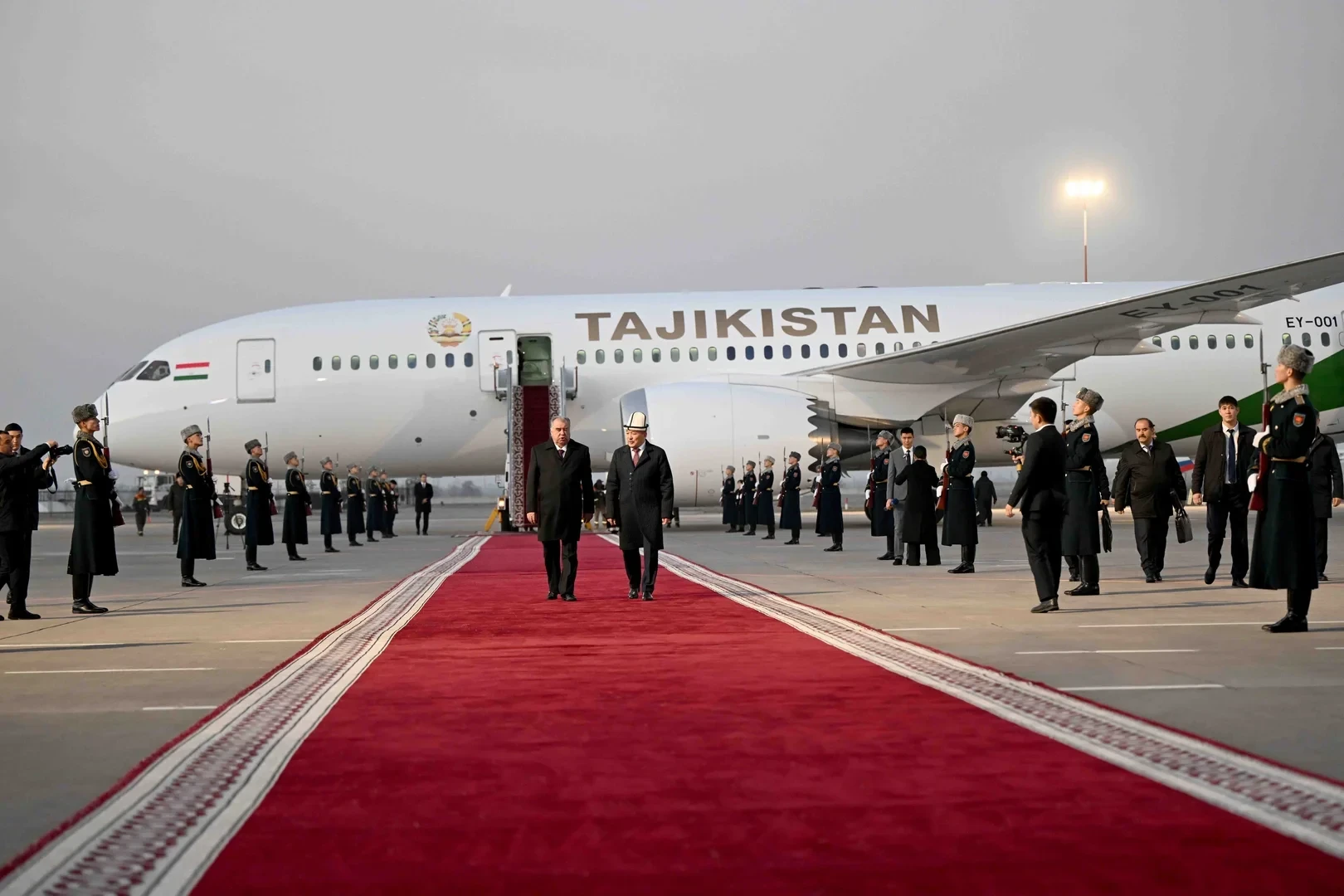 На международном аэропорту «Манас» высокопоставленного гостя встретил председатель кабинета министров и руководитель администрации президента Кыргызской Республики, Адылбек Касымалиев.