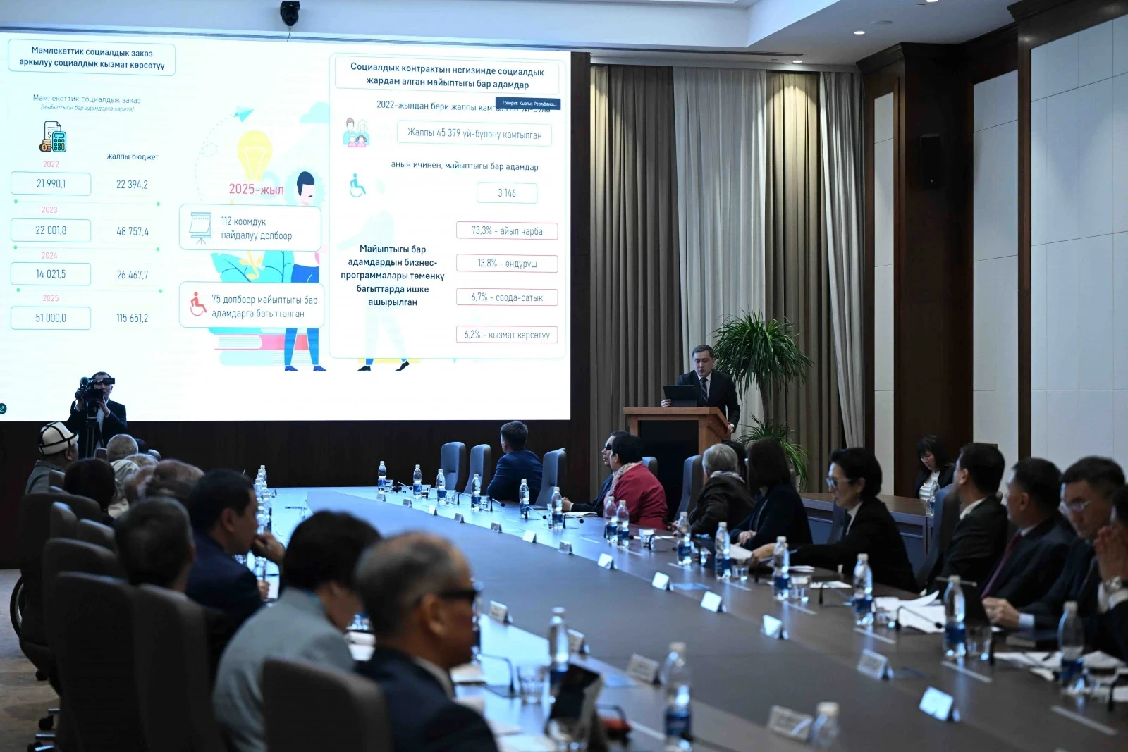 Важным моментом стало эффективное функционирование института личных ассистентов, которые обеспечивают постоянный доход 14 тысячам 730 человек, предоставляя необходимую помощь нуждающимся. Программа «Социальная ипотека» позволила обеспечить жильем 258 семей. В 2025 году запланировано значительное увеличение государственного социального заказа — до 115 миллионов сомов, из которых 51 миллион будет направлен на услуги для людей с инвалидностью, что в пять раз превышает объем средств, выделенных в 2022 году.