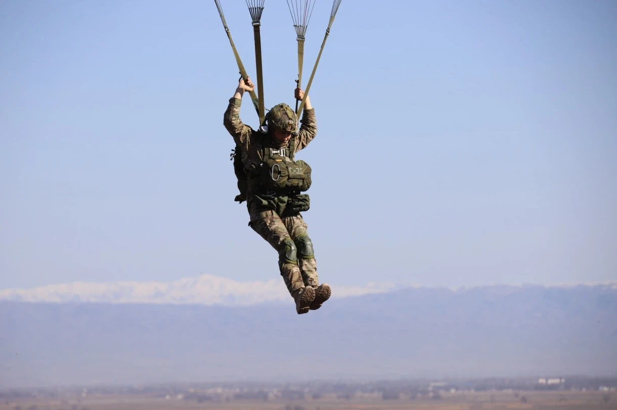 В воздухе военнослужащие следовали четкому плану рассеивания, а приземления осуществлялись на заранее определенные сектора. Некоторые десантники выполняли функции ведущих группы, отрабатывая управление построением.