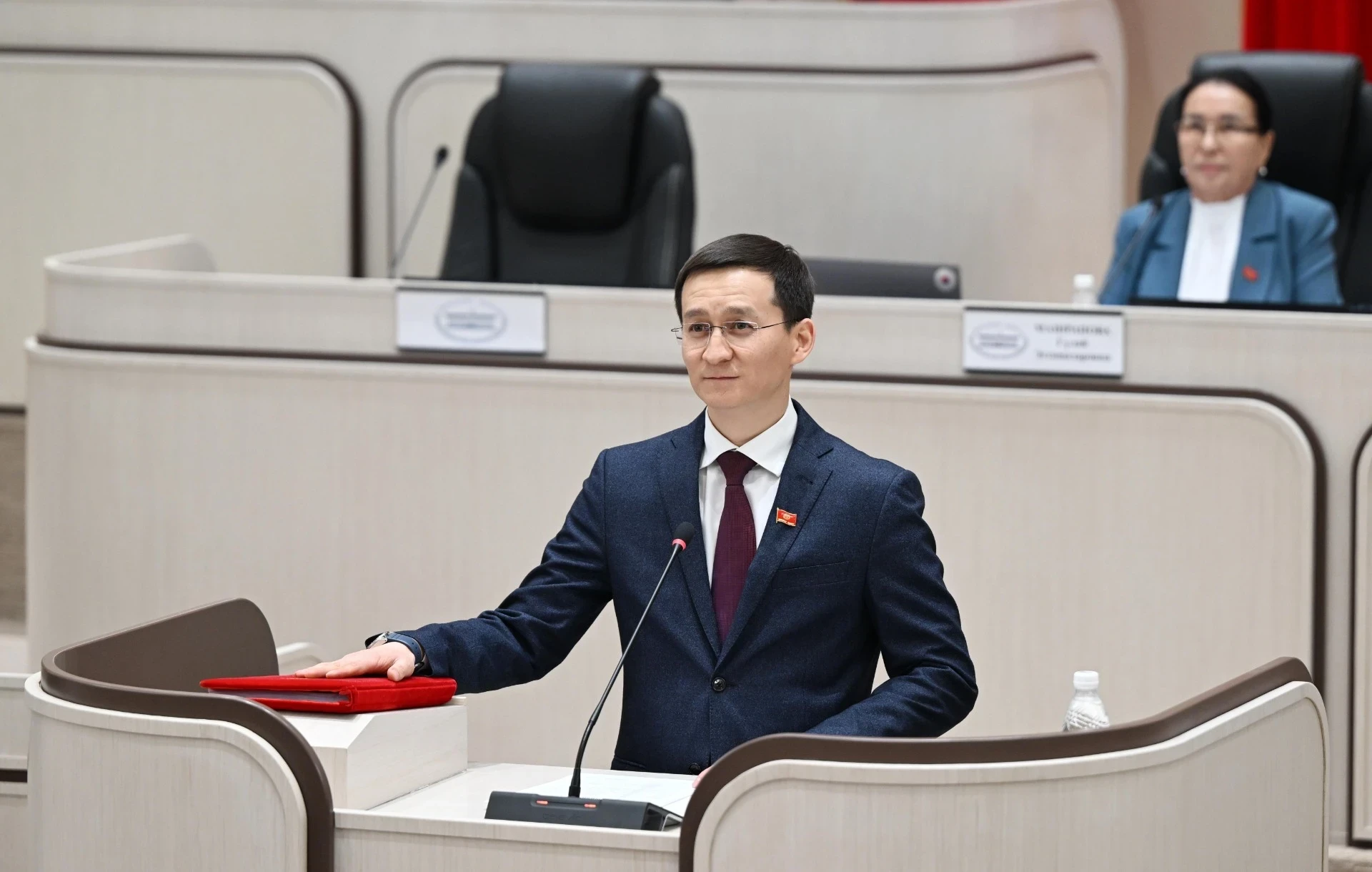 , Марат АБДЫКАЛЫКОВ Фото Жогорку Кенеша. Нурланбек Тургунбек уулу на присяге в декабре 2025 года...