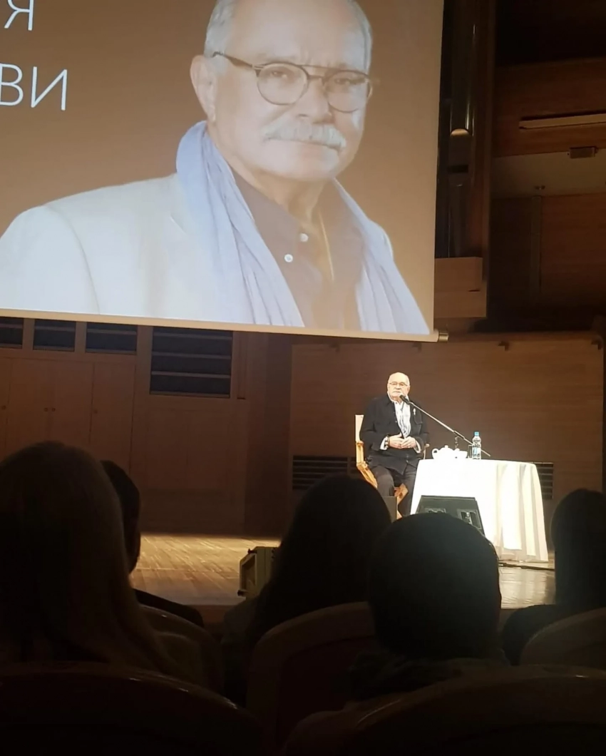 На творческом вечере, который прошёл в Московском международном доме музыки, режиссёр отвечал на вопросы зрителей, показывал фото с премии "Оскар", куда ездил вместе с дочерью Надей, и кадры из своих фильмов.