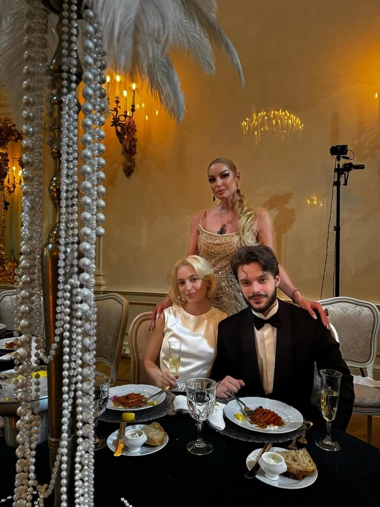 Дочь бывшей примы Большого театра выбрала для свадьбы исторический особняк Мясникова в центре Петербурга. Банкет в честь молодых организовали в самом торжественном зале – с канделябрами и позолотой. На подготовку ушло три месяца. Все детали праздника согласовывала Ариадна, а звездная мама их утверждала. Декор и стиль торжества был полностью продиктован невестой. За основу взяли фильм «Гэтсби». Так что гости пришли в перьях, бусах и блестках. На импровизированной сцене разбросали упавшие старинные люстры.