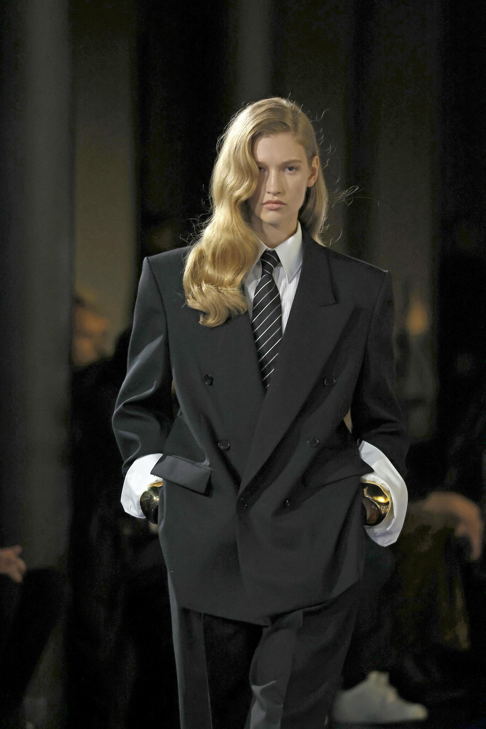 Power dressing снова в моде. Брючные костюмы с шелковыми галстуками и мужскими оправами — это новый уровень элегантности. Они универсальны и подойдут для любой ситуации, от офиса до вечерних встреч.
