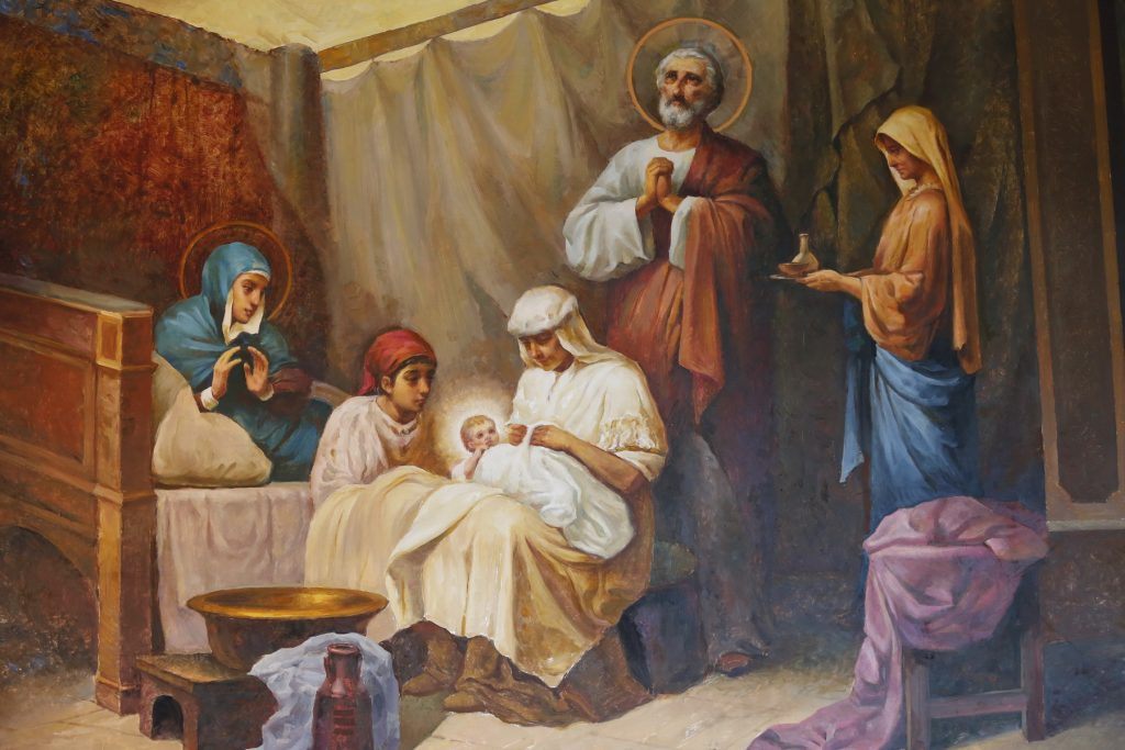Ангел велел Иоакиму и Анне назвать дочь Марией. Узнав радостное известие, будущие родители поклялись посвятить первенца Богу. Спустя три года после рождения Марию отдали на воспитание в Иерусалимский храм.