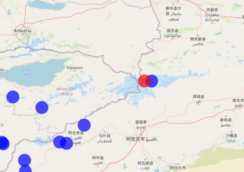 По данным института, эпицентр землетрясения располагался в 165 километрах к востоку от Каракола, на территории Китая.